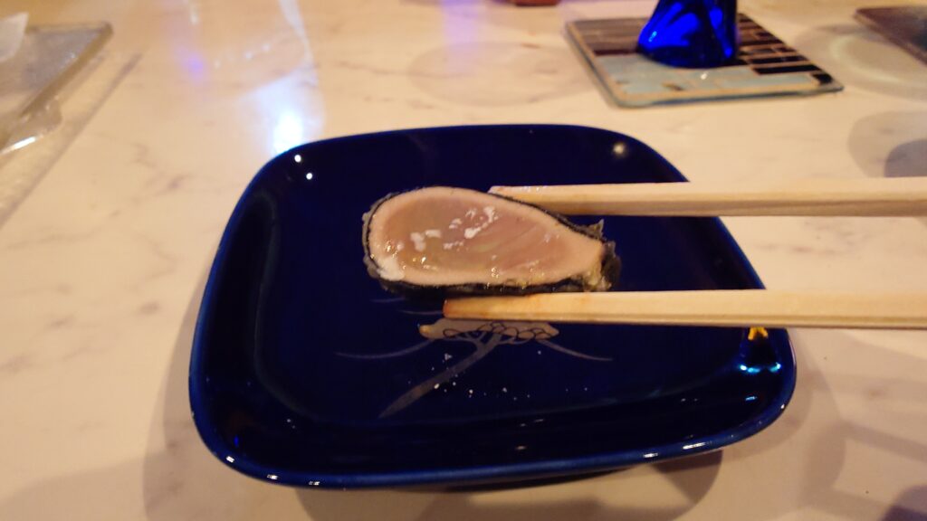 このカツオ、炙る前にまさかの漬けになっているとは露知らずで