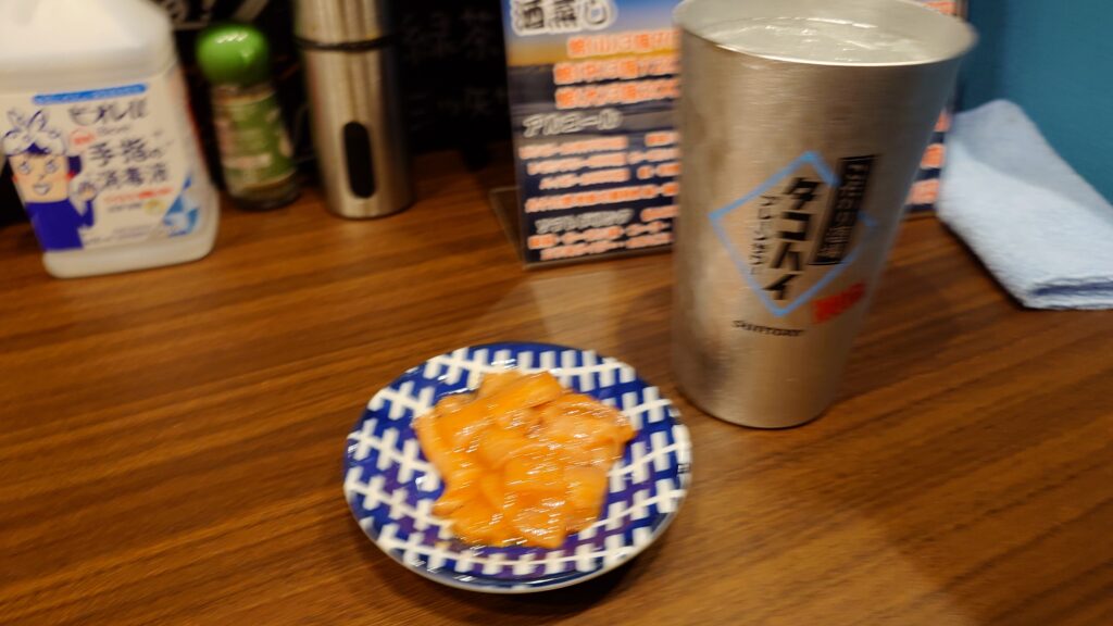 イカ明太をオーダーし、レモンサワーと共に本日の1人飲みをスタートする運びに。