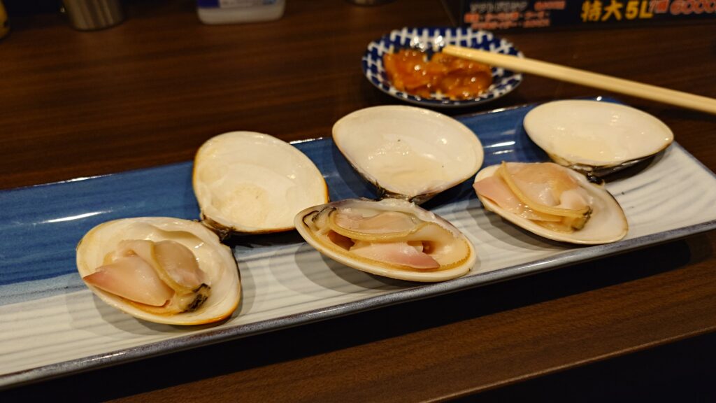 蛤に始まり牡蠣の食べ比べ、更にはホタテをも堪能する1人飲みでの貝三昧