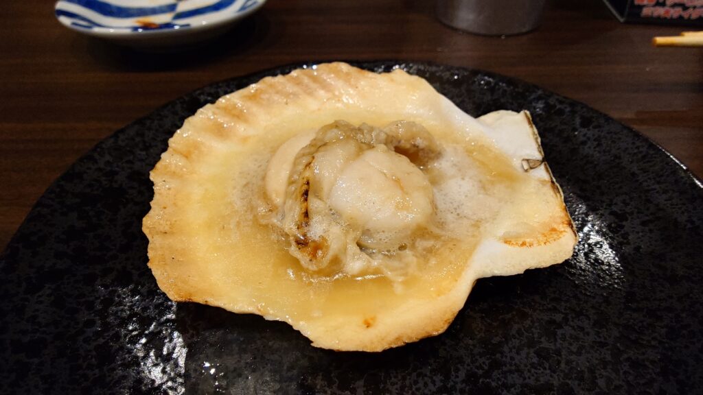 こちら、貝料理の定番ともなるホタテのバター焼き