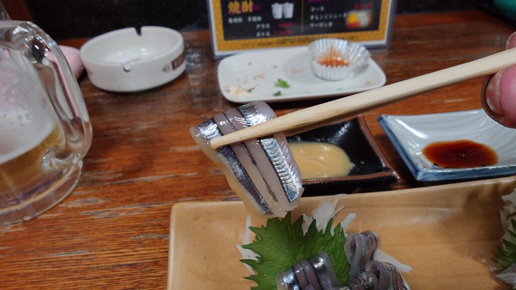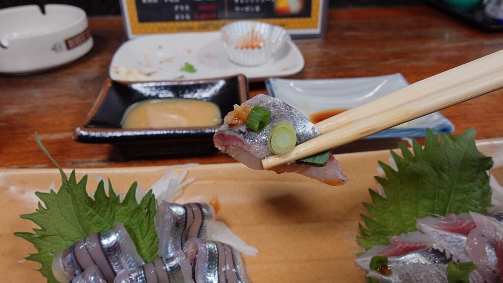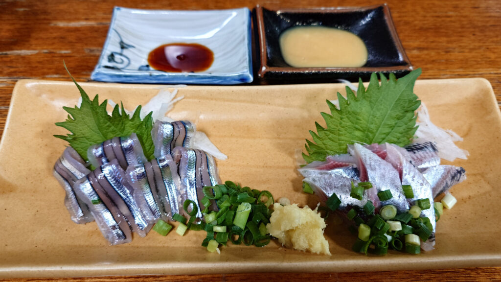 向かって左がきびなご、そして右はイワシのお刺身となります